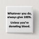For the sarcasm lover in all of us. Check out this witty “Whatever You Do, Always Give 100%. Unless You're Donating Blood.” design on apparel, mugs, mousepads, buttons, and other unique gifts.