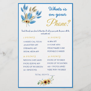 Blue What's On Your Phone Bridal Shower Game Invitation