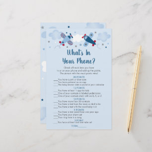 What's on Your Phone Blue Gingham Baby Shower Game Invitation