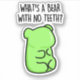 What's A Bear With No Teeth Funny Gummy Bear Riddle Pun features a green gummy bear with no teeth. Cute pun gift for family and friends who love candy puns.