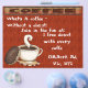 Spruce up your shop with these matching mugs, t-shirts, flyer, letterhead and profile card with our design What’s a coffee, Without a doughnut!, featuring a whit cup with coffee in it and steam coming of it and a chocolate doughnut leaning up on its side against the white cup. The flyer, letterhead and profile card also feature a reddish-brown background with a brown-thorn-red banner saying coffee on it. See other products in this design