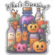 This cute Halloween sticker has cute potion ingredients and the words "What's Brewing?" above them. The text can be personalised if you prefer it to say something else. This sticker can be used as a "treat", reward sticker, or even to decorate your water bottle, because it's waterproof.