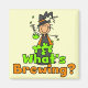 A stick figure witch makes a magic potion on Halloween T-shirts, sweatshirts, cards, stickers, mugs, trick or treat tote bags, and other Halloween stick figure witch apparel and gifts. Text reads What's Brewing?