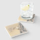 The coasters are gorgeous, a quality feel and heavy weight. They look like a precious archeological find. A rustic stone juxtaposed with a modern floral black and white print. I like the way the print goes slightly imperfect on the cut stone edges giving them a kind-of natural beauty.
