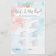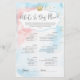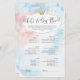 Double sided baby shower game. One side is "What's in your phone?" and the back side is "What's in your purse?" This baby shower game card features a script modern font on pink and blue watercolor background, perfect for a surprise! Prince or princess? Use this card for your trendy gender reveal party!