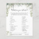 The light and airy vibe of this baby shower is full of lush sage greenery, bronze accents, and dainty white florals that pay homage to the Baby in Bloom theme while keeping it gender neutral. Green is a hue full of vivaciousness, and life making it the perfect theme for a baby shower. If you’re a nature lover, then you’re going to love this all-natural gender neutral theme! Just think of the succulent party favours. Change background colour or add graphics to match your shower theme. Need coordinating graphics please contact me for a custom order. Of course it's not required that you play games at the baby shower, but consider this: You're going to have an all-ages group, and most of the guests have probably never met one another before the party. Mixing in a few of these classic baby shower games is a perfect way to break the ice. Our double sided game cards are an elegant and practical addition to any shower. These professionally designed cards are quickly customisable. Add your custom wording to this design by using the "Edit this design template" boxes on the right-hand side of the item, or click the blue "Customise it" button to arrange the text, change the fonts and colours and to also add additional information or images to this design. Click "Customise Further" to open full editing options. If you need any coordinating items, (thank you cards, etc.) please contact me for a custom order. ****For custom requests you need my help with, do not place this merchandise in your cart. Instead, email me your request at lauralise@iyhtvdesigns.com A link to your merchandise will be emailed to you once the item is available. You can use that link to place your order. Please allow up to 48 hours.