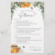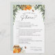 Cute bee themed bridal shower game features green watercolor foliage, a jar of honey, and tiny honeybee illustrations. Personalise with the bride to be's name and bridal shower date along the bottom. "What's on your phone?" game prompts guests to answer questions about things they have on their phone with 1, 5, and 10 point values.