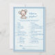 Adorable brown and blue baby bear for a boy's baby shower. What's On Your Phone baby shower game. Bllue blanket with blue stitched edge border for background. Templates provided on back.