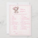 Adorable brown and pink baby bear for a girl's baby shower. What's On Your Phone baby shower game. Pink blanket with pink stitched edge border for background. Templates provided on back.
