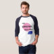 I bought the Men's Basic 3/4 Sleeve Raglan T-Shirt, White/Navy. It arrived on time for a gift and is of a great quality and fits perfectly! So cute! Zazzle has done it again! The printing was clear and filled in solidly.