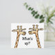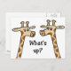Funny cartoon with one giraffe asking another, "what's up?". Fun design on a postcard to send for any occasion! Also available on t-shirts & gifts!