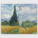 Wheat Field with Cypresses by Vincent Van Gogh, oil on canvas 1889, is a landscape painting of a brilliantly coloured field under a swirling sky of blue, grey and white clouds, with a pair of cypress trees growing upwards into the air like dark flames. Van Gogh painted many views of cypress trees while when committed in the asylum in Saint-Remy in the south of France after a breakdown, in the period of his famous Starry Night series. Painted in expressive, emphatic strokes of swirling impasto oil paint, the picture captures the inner life and rhythms of sky, plants, hills, trees and soil, in a striking example of the mature, Post-Impressionist style that Van Gogh developed in the years before his untimely death.