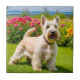 Wheaten Scottish Terrier playing in Flowers Grass Ceramic Tile
