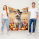 Wheaten Terrier In Autumn Leaves Thanksgiving Art Fleece Blanket