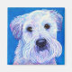 This magnet features a soft coated wheaten terrier in shades of white, blue, purple & pink. Her eyes are a deep rich brown. How can you resist that face? I created the original portrait in watercolor, ink & colour pencil on watercolor paper.