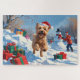 Wheaten Terrier Running in Snow with Christmas Hat Jigsaw Puzzle