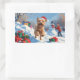 Wheaten Terrier Running in Snow with Christmas Hat Rectangular Sticker