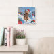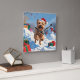 Wheaten Terrier Running in Snow with Christmas Hat Square Wall Clock