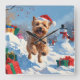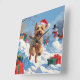 A joyful Soft Coated Wheaten Terrier runs through the snowy winter scene, wearing a festive red Christmas hat. This charming design highlights the breed’s soft flowing coat, cheerful spirit, and affectionate nature while capturing the warmth and joy of the holiday season. A delightful winter moment full of festive cheer.