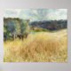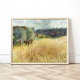 Wheatfield by August Renoir is a landscape painting featuring wheat field near Wargemont, in Normandy, where Renoir spent several summers at the estate. The wheat field, the trees on the left, the hill in the background and the sky were created with large light and dark masses, applied using diluted colours. Highlights were then captured with added brushstrokes of different colours.