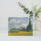 This Wheatfield with Cypresses print is one of three similar 1889 paintings by Vincent van Gogh. All three were painted at the Saint-Rémy mental asylum where he was a patient there at that time. In a letter to his brother, Theo, Vincent described the painting: "I have a canvas of cypresses with some ears of wheat, some poppies, a blue sky like a piece of Scotch plaid; the former painted with a thick impasto ... and the wheat field in the sun, which represents the extreme heat, very thick too."