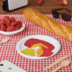 This design is a wheel of cheese. The cheese wheel has a big slice cut out of it. This wheel of cheese design looks great on this Paper Plates