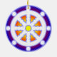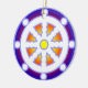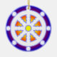 "Wheel of Dharma" or "Wheel of Life", is a symbol that has represented dharma, the Buddha's teaching of the path to enlightenment, since the early period of Indian Buddhism.[1] A similar symbol is also in use in Jainism. It is one of the Ashtamangala symbols. The Dharmachakra symbol is represented as a chariot wheel (Sanskrit cakram) with eight or more spokes. It is one of the oldest known Buddhist symbols found in Indian art, appearing with the first surviving post-Harappan Indian iconography in the time of the Buddhist king Aśoka.[2] The Dharmacakra has been used by all Buddhist nations as a symbol ever since. In its simplest form, the Dharmachakra is recognised globally as a symbol for Buddhism. http://en.wikipedia.org/wiki/Wheel_of_dharma