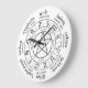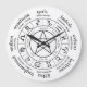A clock that shows the wheel of the year: astrological signs, equinox and solstice quarter days, cross quarter days and sabbats. Imbolc / Candlemas, Ostara / Spring Equinox, Beltain /May Eve, Litha / Summer Solstice, Lughnassad / Lammas, Mabon / Fall Equinox, Samhain / Hallow's Eve, Yule / Winter Solstice.