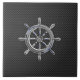 A nautical wheel design on a black carbon fibre style background decor. A racy modern nautical gift.