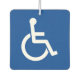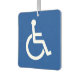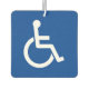 Wheelchair icon dissability handicapped symbol car air freshener. Make your vehicle smile nice with a scent. Custom sign for truck, bus, transporter etc. Blue square with invalid symbol. Also handy for reserved parking.