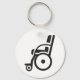 This design is a wheelchair icon. The wheelchair is side on and a black outline. This wheelchair icon design looks great on this Keychain