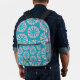 Aqua blue backpack with whelk shells design. The lovely lightning whelk shell forms circular designs and is patterned over a sea blue colour. This sea themed pack is perfect for kids or adults who appreciate the ocean and it's seashell dwelling creatures.