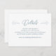 Seashells wedding details enclosure cards. Use for supplying guests with pertinent information about the event. Two lightning whelk shells decorate the top next to “Details” wording. All text is sea blue colour. A wedding website can be included to direct guests for more information, to reply online, and to see engagement photos as you prefer. This card comes in other sizes with more paper selections. The elegant metallic silver paper is shown here which is more expensive.