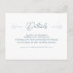 Seashells wedding details enclosure cards. Use for supplying guests with pertinent information about the event. Two lightning whelk shells decorate the top next to “Details” wording. All text is sea blue colour. A wedding website can be included to direct guests for more information, to reply online, and to see engagement photos as you prefer. This card comes in other sizes with more paper selections. The elegant metallic silver paper is shown here which is more expensive.