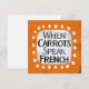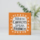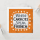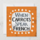 "When Carrots Speak French" is a fun text design with a white accent shape surrounded by white whimsical textured dots.