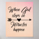 When God Steps in, Miracles Happen Quote Posters with light coral/pink gradient background, heart arrow accent with brush script. More at Christian Quotes Shop. Link below: