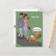 A card with a funny cartoon about a dog and his owner looking at their phones while taking a walk. The background, image and text can be customised. Original cartoon by DBcartoons.