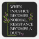 WHEN INJUSTICE BECOMES NORMAL, RESISTANCE BECOMES SQUARE STICKER