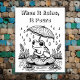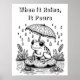 When it rains, it pours, quote. Cute frog sitting on a lily pad holding an umbrella in a rain storm. Adult colouring poster.