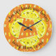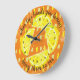 Fun kitchen clock with retro watercolor style lemon wedge and abstract polka dots, aged cracks and dings plus your choice of background colour.