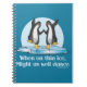 When on thin ice, might as well dance. Funny and witty slogan / saying with two penguins dancing together on cracked ice. What's the sense of worrying when you can't change the circumstances. Don't worry, be happy! With a blue background. Winter Penguin Design.