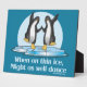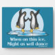 When on thin ice, might as well dance. Funny and witty slogan / saying with two penguins dancing together on cracked ice. What's the sense of worrying when you can't change the circumstances. Don't worry, be happy! With a blue background. Winter Penguin Design.