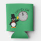 With a glass of champagne, this dapper penguin waits for the clock to strike twelve, so he can celebrate the new year. Background colour can be customised.