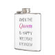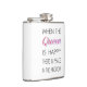 The flask itself is fine. It’s a cheap flask, obviously bought in bulk, however am prepared to overlook that. Given that it is a personalized item, I would have liked to have seen gift boxing instead of the generic packaging. Terrible printing, and/or quality. It’s a cheap, tacky vinyl. It is not cut straight and is also applied in a way that it is overhanging the bottom, causing the glue to catch on items and it will eventually roll and tear, damaging the wrap.
