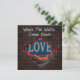 This design captures a powerful metaphor for revealing a hidden truth. It features a weathered brick wall with a jagged opening, through which the word "LOVE" is partially visible and glowing with a warm, red light. The phrase "When The Walls Come Down" is written in a light graffiti style on the brick, symbolizing the moment we choose to reveal what has been hidden.