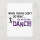 Having a bad day? Then remember this motto: When things don't go right... go left, and then dance! You'll keep on dancing with this design that helps put everything in perspective with a cheerful dancing figure and the word "DANCE" in colourful purple letters.