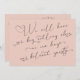It's become unavoidable for you to change your wedding date. Featuring a gorgeous, modern calligraphy font embellished with hearts, the front features the message: "We will have our big wedding when we can hug our beloved guests." The back includes the header "Change of Plans" followed by template fields for your personal details; edit to suit your own needs. Also, you may change the background to any colour you prefer! // 139 //