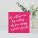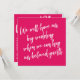 This suite's distinction is due to the bold, casual handwritten script font used for accent phrases. If you're in the position of needing to inform your wedding guests that you've had to change your big date, here is a bold option. In this piece, the hand-lettered script font was used to create simple typography graphics. On the front is "We will have our big wedding when we can hug our beloved guests" and on the back, "New Plan". Use the template fields to add your personal details and make this modern design your own. The background can be changed to any colour you prefer. Please reach out with any special requests or for customising assistance. // 105 //