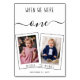A modern, more original way to personalise your table numbers with childhood photos of bride and groom at that number age (the default is one). The placeholder photos of a little girl (the bride) and a little boy (the groom) have retro white borders, overlapping, in the lower half. The names of the bride and groom are written on the photos' lower white borders. In the upper part, there is the message "when we were [age]" with the age written in a modern script. In the lower part, under the two photos, there is the date. The text is black, the background is white.
