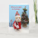 The outside text on this card is: "When we're apart on Christmas..." and on the inside "I am not a-mews-ed." Bubba kitty is in his Christmas outfit, sitting by his tree, lamenting that he is not spending Christmas with Missy, in the picture frame. The card is customisable and you can change the text, fonts, and colours of fonts. This font is appropriately "Missy",which is the name of Bubba's little friend in the picture frame.